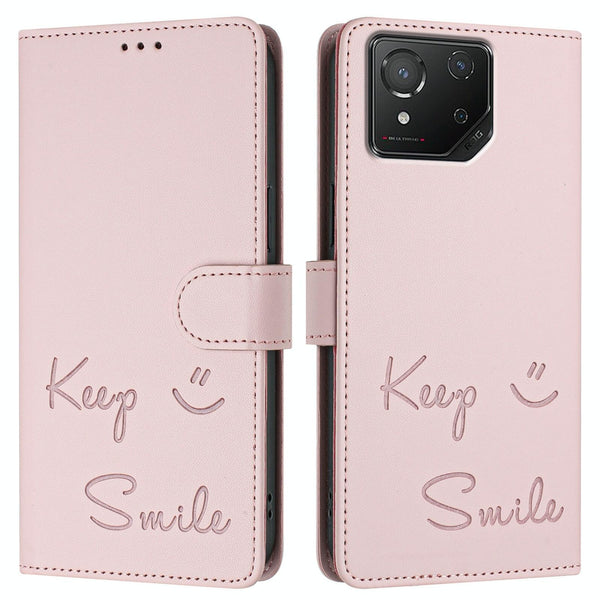 For Asus ROG Phone 8 / 8 Pro Smile Embossing RFID Leather Phone Case(Pink)