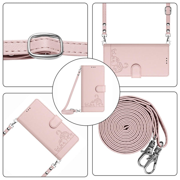 For Asus ROG Phone 8 Cat Rat Embossed Pattern RFID Leather Phone Case with Lanyard(Pink)