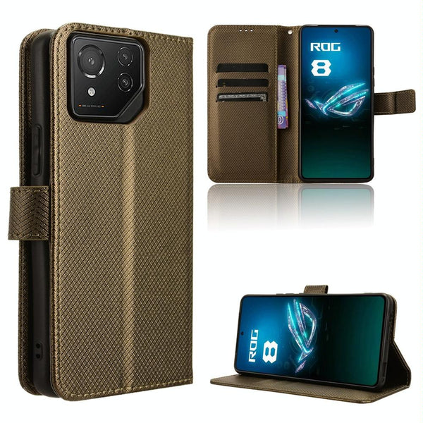 For Asus ROG Phone 8 Diamond Texture Leather Phone Case(Brown)