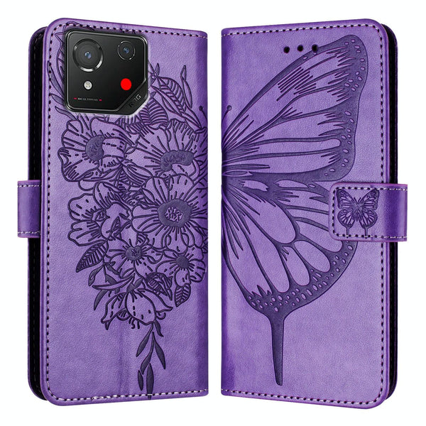 For Asus ROG Phone 8 Embossed Butterfly Leather Phone Case(Purple)