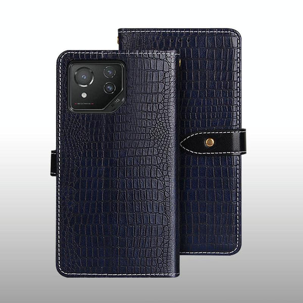 For ASUS ROG Phone 8 idewei Crocodile Texture Leather Phone Case(Dark Blue)