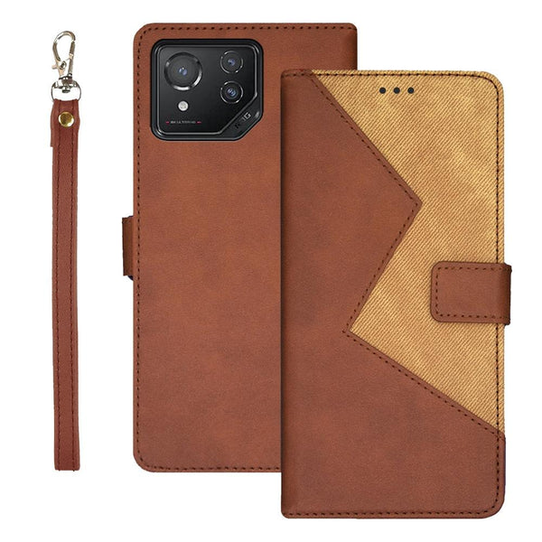For ASUS ROG Phone 8 idewei Two-color Splicing Leather Phone Case(Brown)