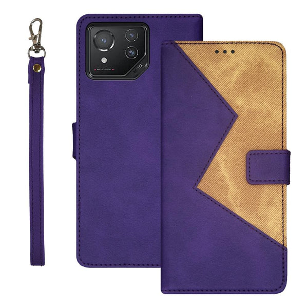 For ASUS ROG Phone 8 idewei Two-color Splicing Leather Phone Case(Purple)