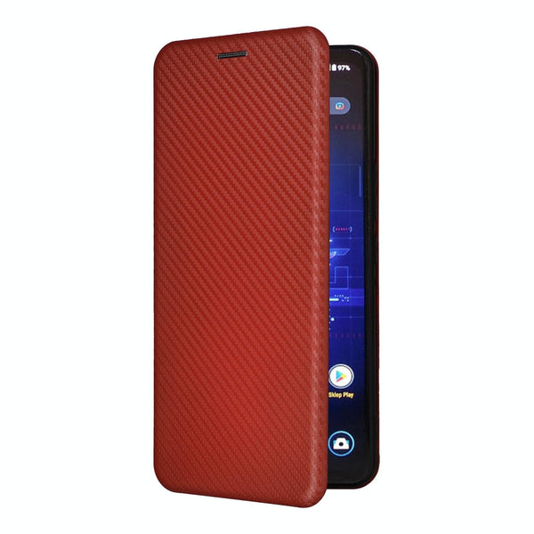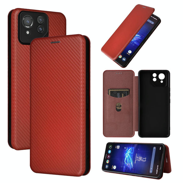 For ASUS ROG Phone 8 Pro Carbon Fiber Texture Flip Leather Phone Case(Brown)
