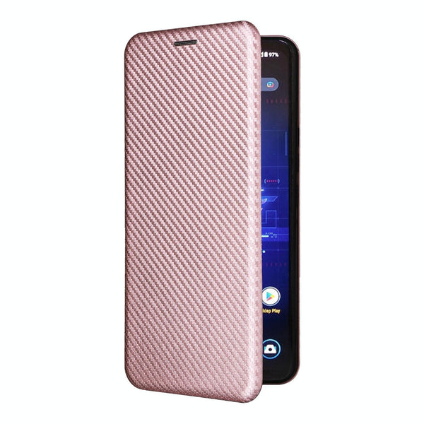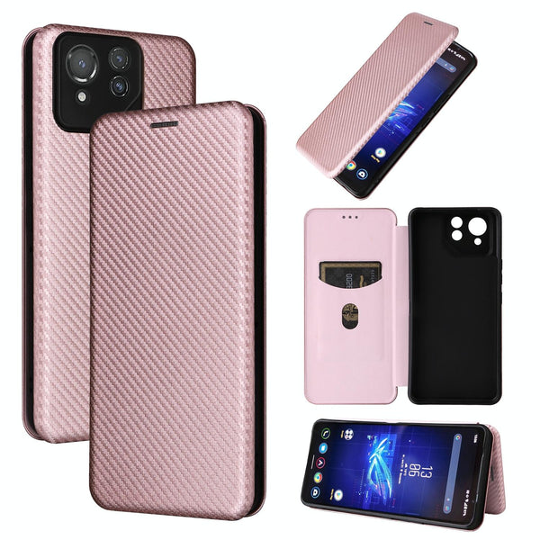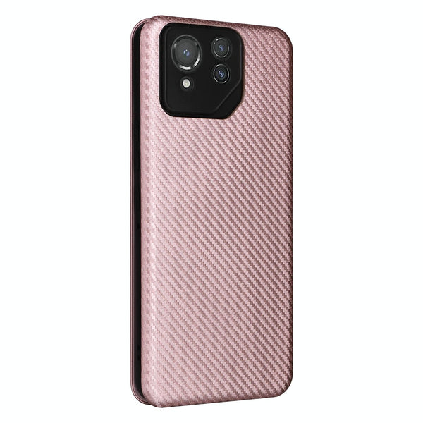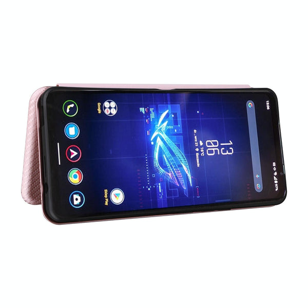 For ASUS ROG Phone 8 Pro Carbon Fiber Texture Flip Leather Phone Case(Pink)