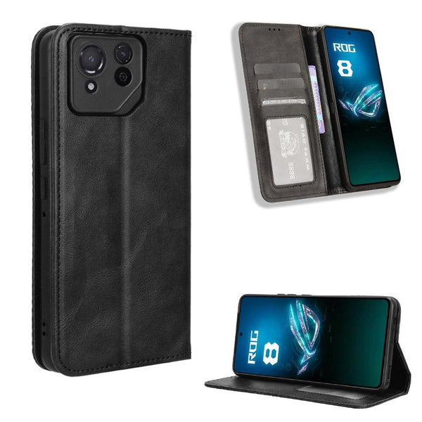For ASUS ROG Phone 8 Pro Magnetic Buckle Retro Texture Leather Phone Case(Black)