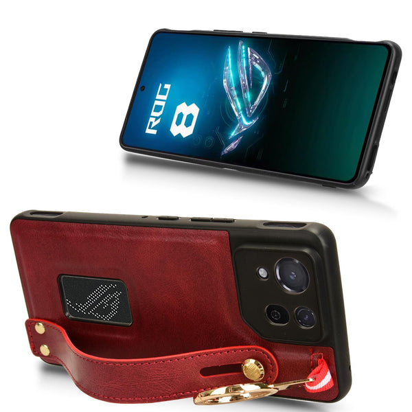 For Asus ROG Phone 8 Pro Wristband Leather Back Phone Case(Red)