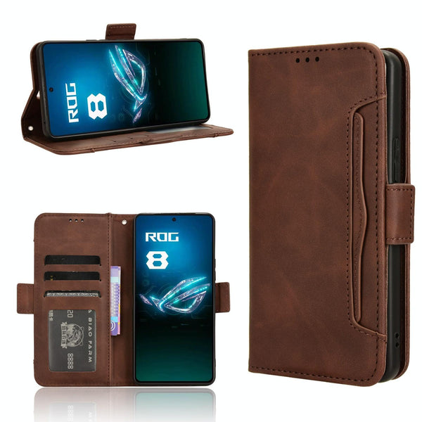 For Asus ROG Phone 8 Skin Feel Calf Texture Card Slots Leather Phone Case(Brown)