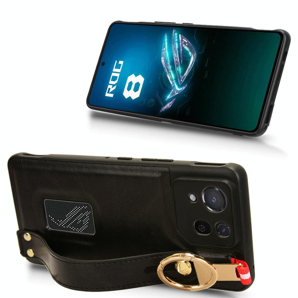 For Asus ROG Phone 8 Wristband Leather Back Phone Case(Black)