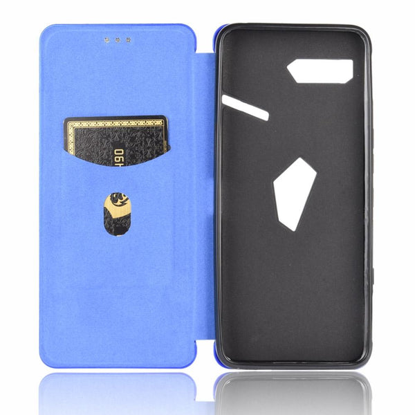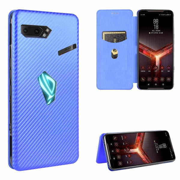For Asus ROG Phone II Carbon Fiber Texture Horizontal Flip TPU + PC + PU Leather Case with Card Slot(Blue)