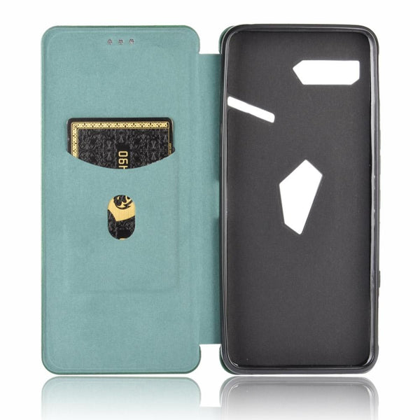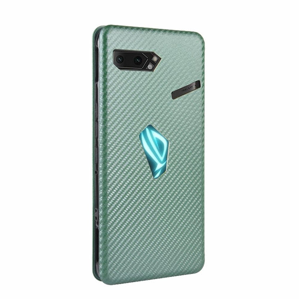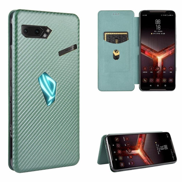 For Asus ROG Phone II Carbon Fiber Texture Horizontal Flip TPU + PC + PU Leather Case with Card Slot(Green)