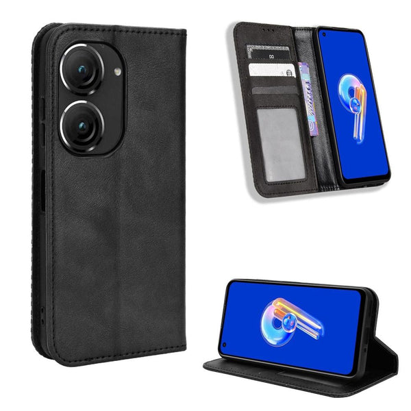 For ASUS Zenfone 10 / 9 Magnetic Buckle Retro Texture Leather Phone Case(Black)