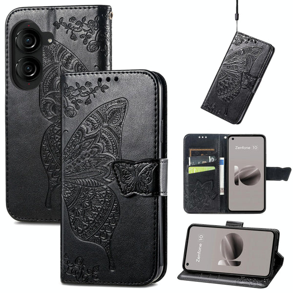 For Asus Zenfone 10 Butterfly Love Flower Embossed Leather Phone Case(Black)