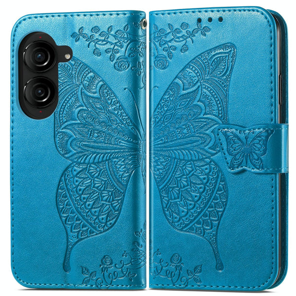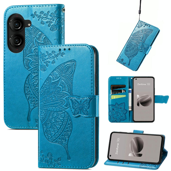 For Asus Zenfone 10 Butterfly Love Flower Embossed Leather Phone Case(Blue)