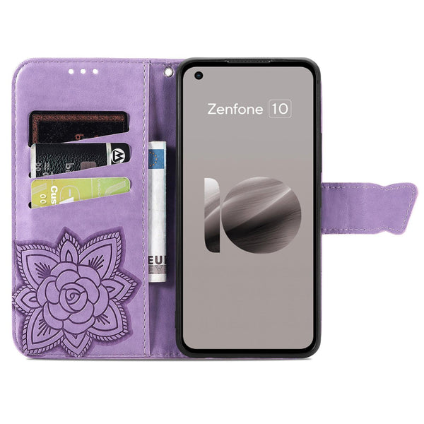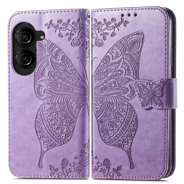 For Asus Zenfone 10 Butterfly Love Flower Embossed Leather Phone Case(Lavender)