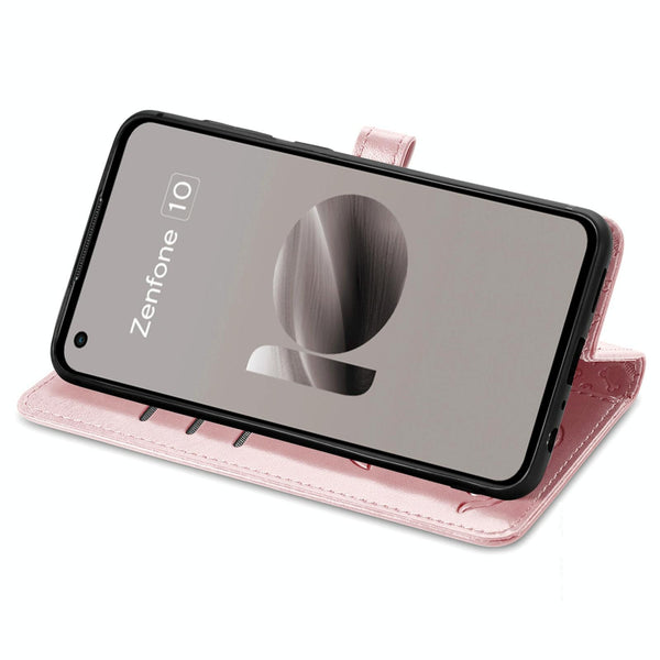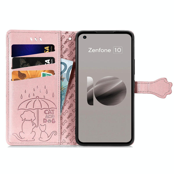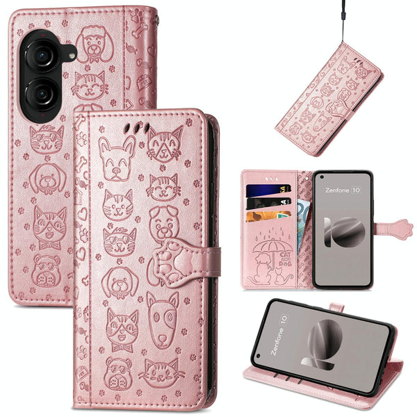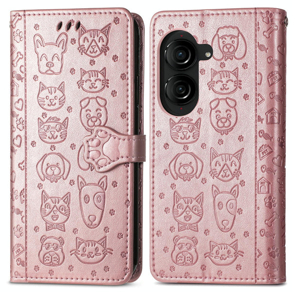 For ASUS Zenfone 10 Cat and Dog Embossed Leather Phone Case(Rose Gold)