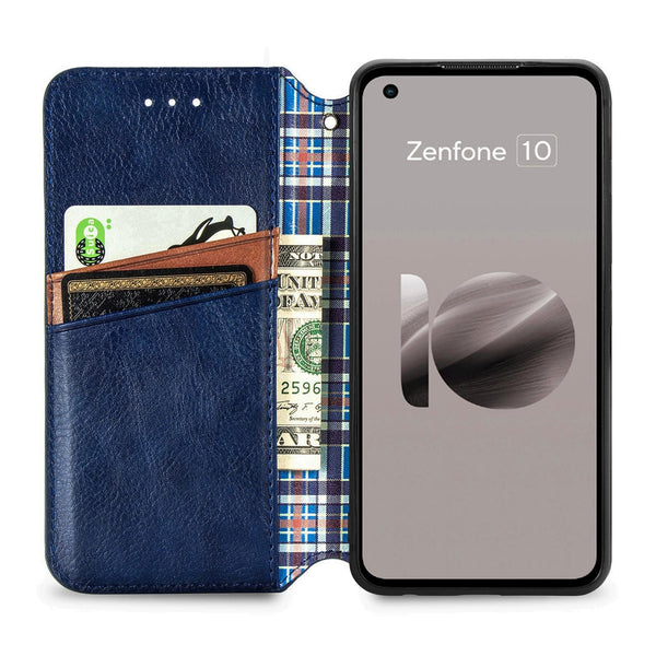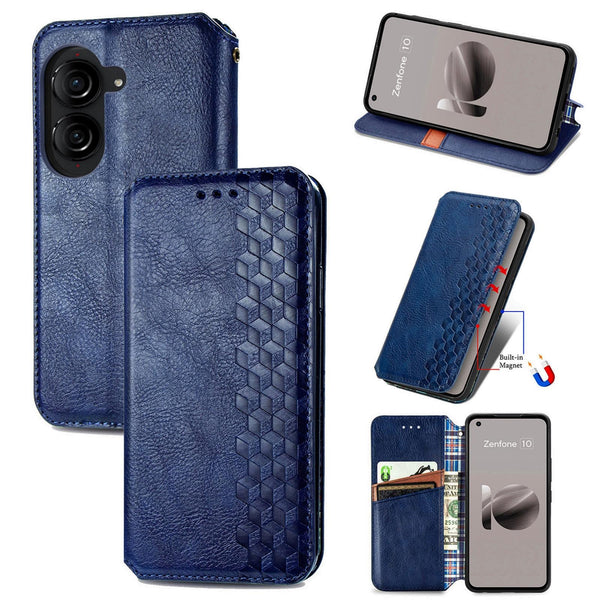 ForASUS Zenfone 10 Cubic Grid Pressed Magnetic Leather Phone Case(Blue)