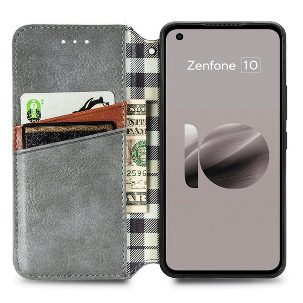 ForASUS Zenfone 10 Cubic Grid Pressed Magnetic Leather Phone Case(Grey)