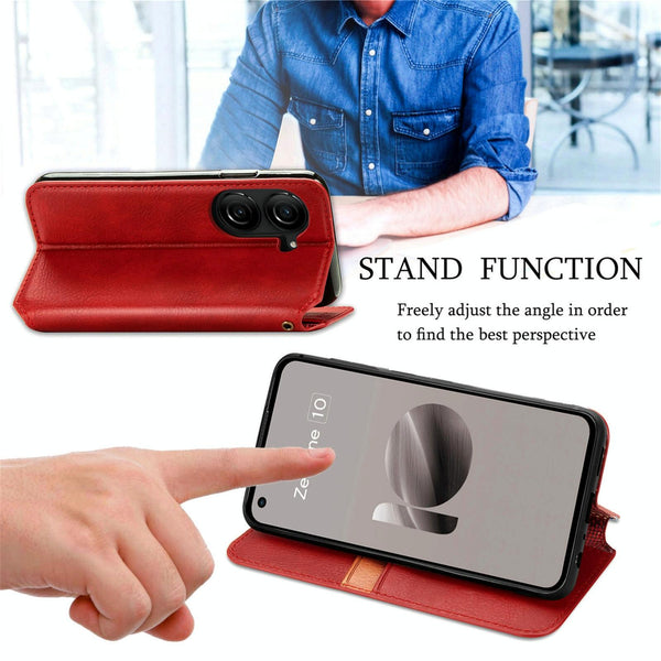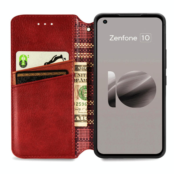 ForASUS Zenfone 10 Cubic Grid Pressed Magnetic Leather Phone Case(Red)