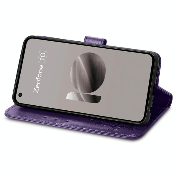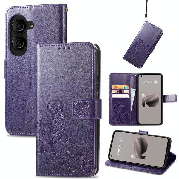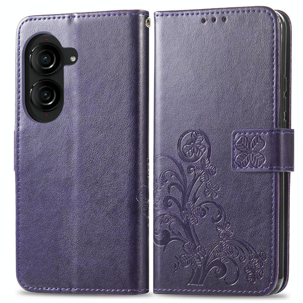 For ASUS Zenfone 10 Four-leaf Clasp Embossed Buckle Leather Phone Case(Purple)