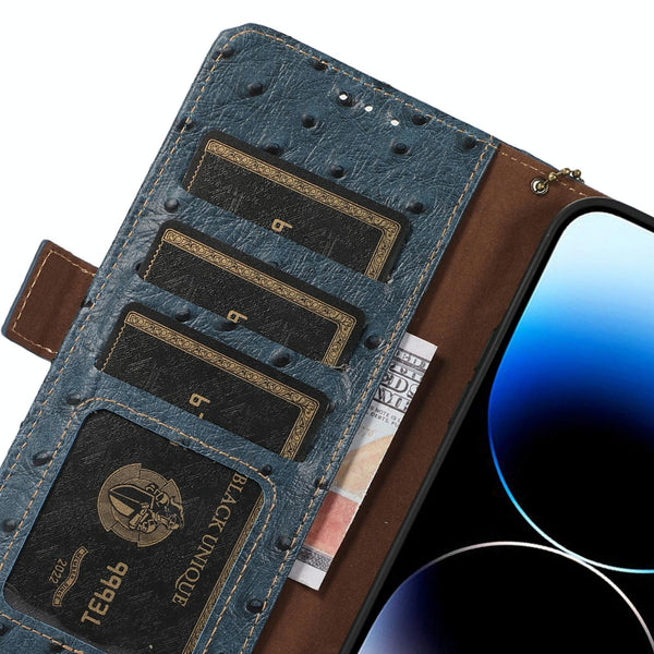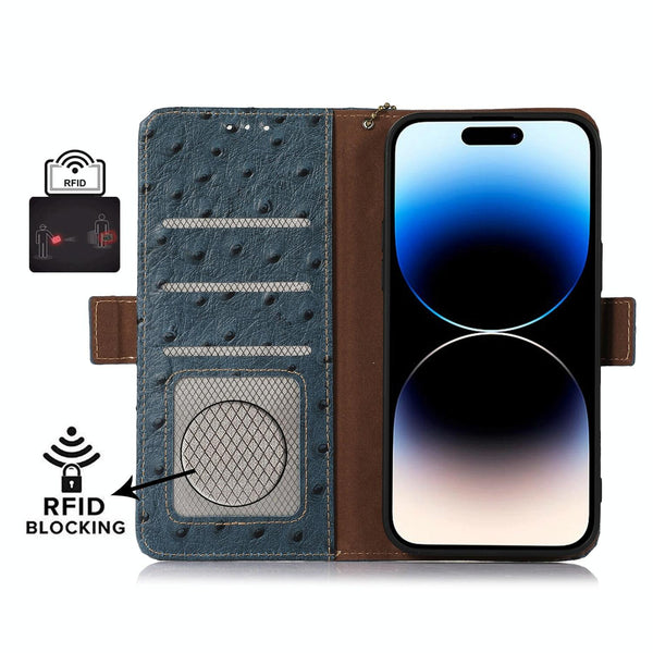 For Asus Zenfone 10 / Zenfone 9 Ostrich Pattern Genuine Leather RFID Phone Case(Blue)