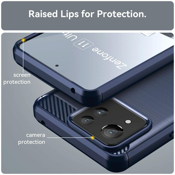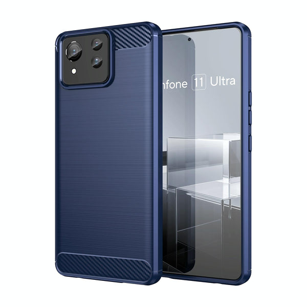 For Asus Zenfone 11 Ultra Brushed Texture Carbon Fiber TPU Case(Blue)