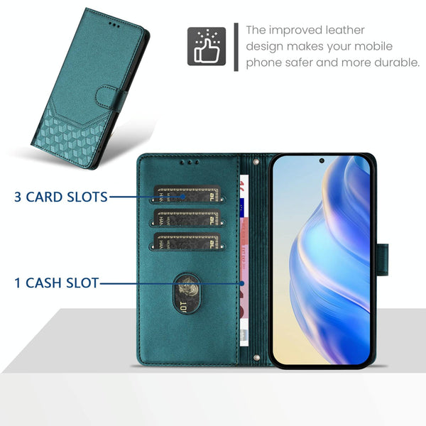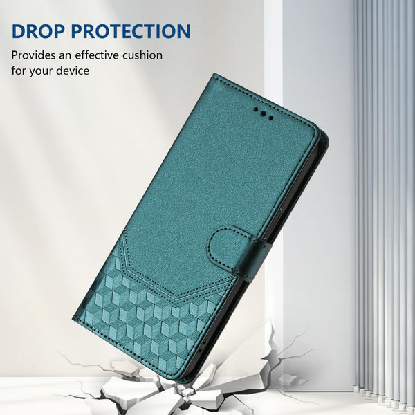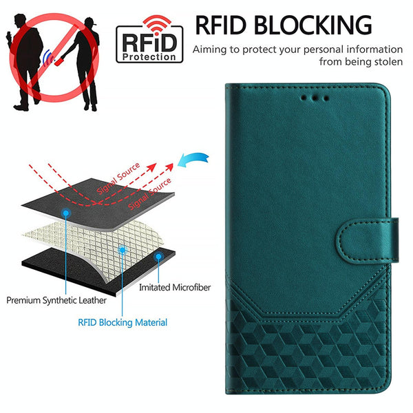 For Asus Zenfone 11 Ultra Honeycomb Embossing RFID Leather Phone Case(Peacock Green)