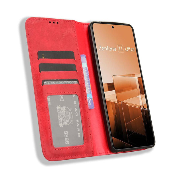 For Asus Zenfone 11 Ultra Magnetic Buckle Retro Texture Leather Phone Case(Red)
