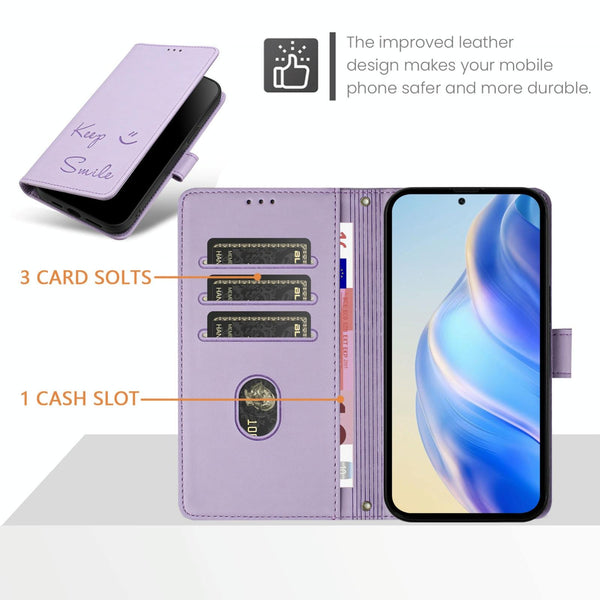 For Asus Zenfone 11 Ultra Smile Embossing RFID Leather Phone Case(Light Purple)