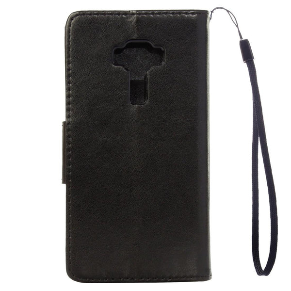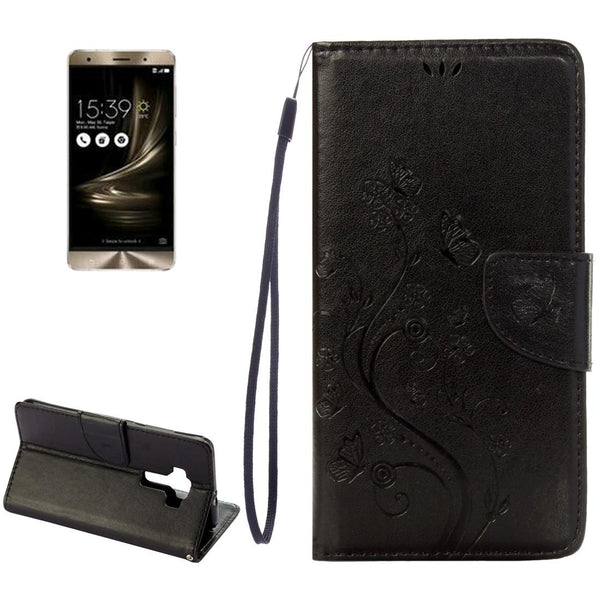For Asus ZenFone 3 / ZE552KL Pressed Flowers Pattern Leather Case with Holder & Card Slots & Wallet(Black)