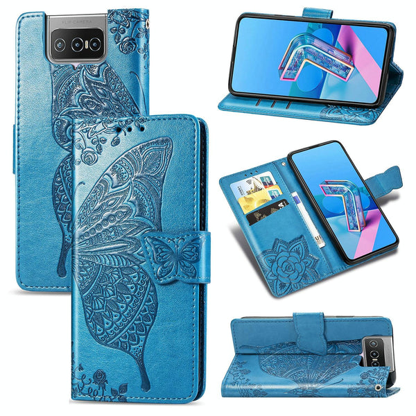 For Asus Zenfone 7 Pro ZS671KS Butterfly Love Flower Embossed Horizontal Flip Leather Case with Bracket / Card Slot / Wallet / Lanyard(Blue)
