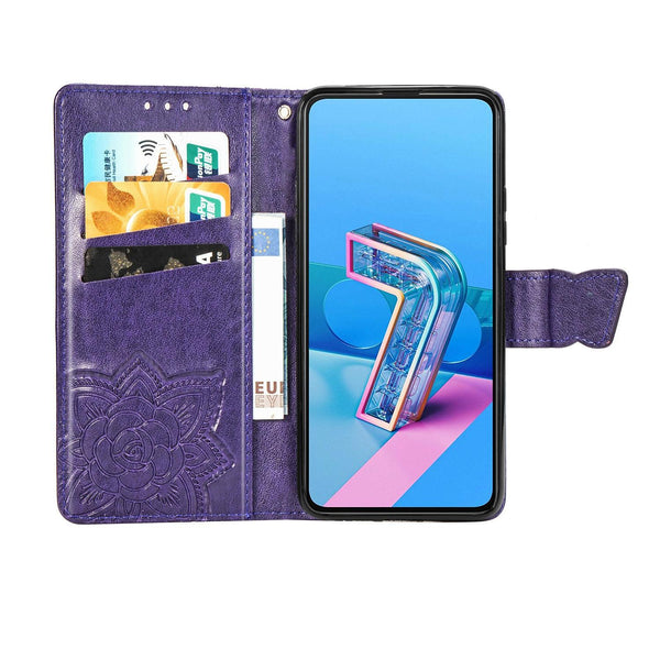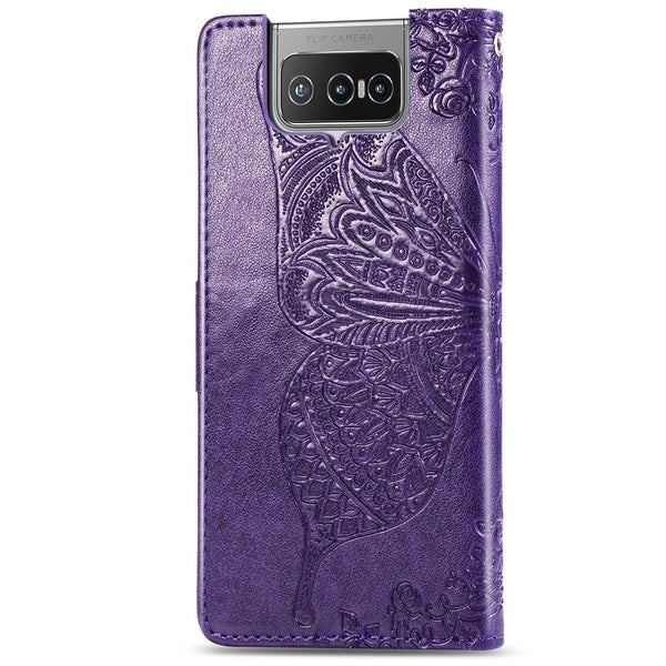 For Asus Zenfone 7 Pro ZS671KS Butterfly Love Flower Embossed Horizontal Flip Leather Case with Bracket / Card Slot / Wallet / Lanyard(Dark Purple)