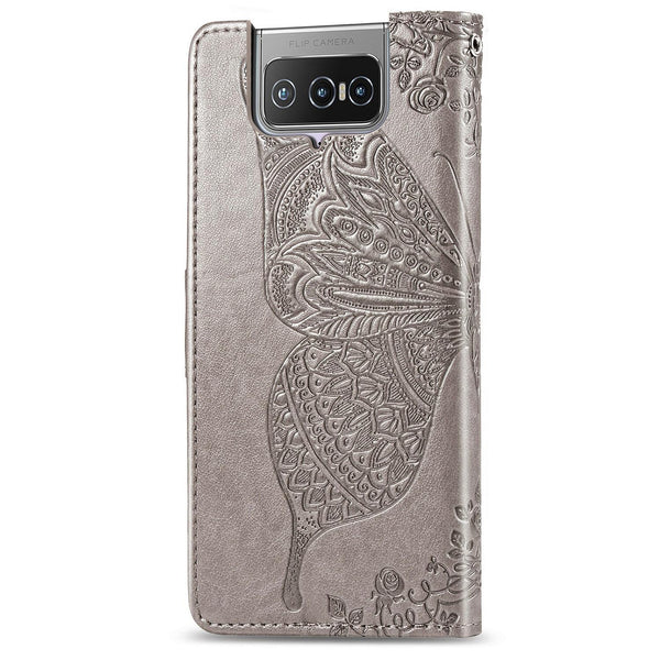 For Asus Zenfone 7 Pro ZS671KS Butterfly Love Flower Embossed Horizontal Flip Leather Case with Bracket / Card Slot / Wallet / Lanyard(Gray)