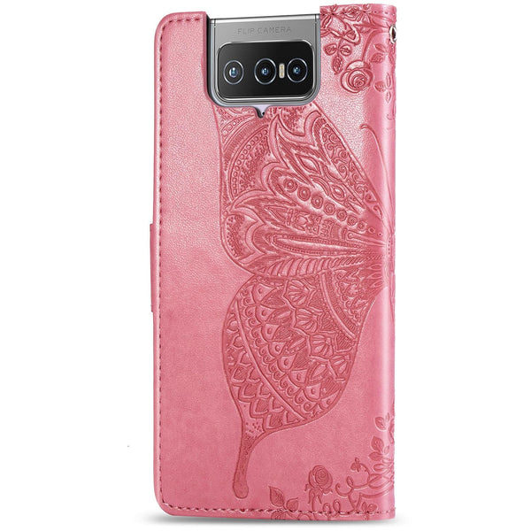 For Asus Zenfone 7 Pro ZS671KS Butterfly Love Flower Embossed Horizontal Flip Leather Case with Bracket / Card Slot / Wallet / Lanyard(Pink)