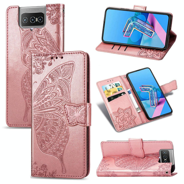 For Asus Zenfone 7 Pro ZS671KS Butterfly Love Flower Embossed Horizontal Flip Leather Case with Bracket / Card Slot / Wallet / Lanyard(Rose Gold)