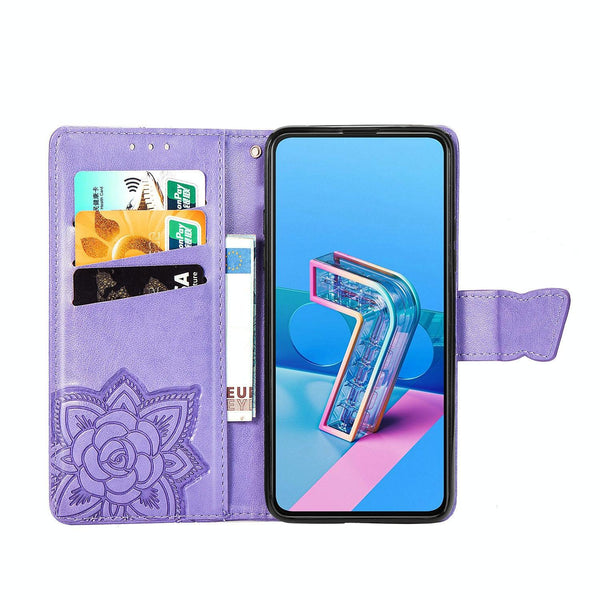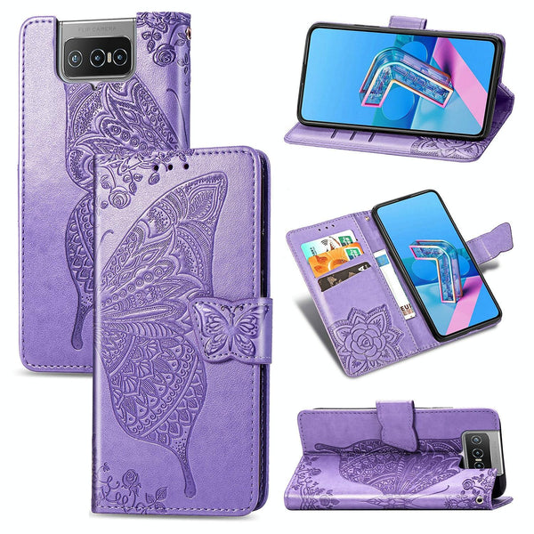 For Asus Zenfone 7 ZS670KS Butterfly Love Flower Embossed Horizontal Flip Leather Case with Bracket / Card Slot / Wallet / Lanyard(Light Purple)