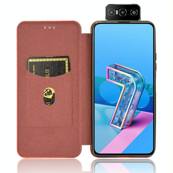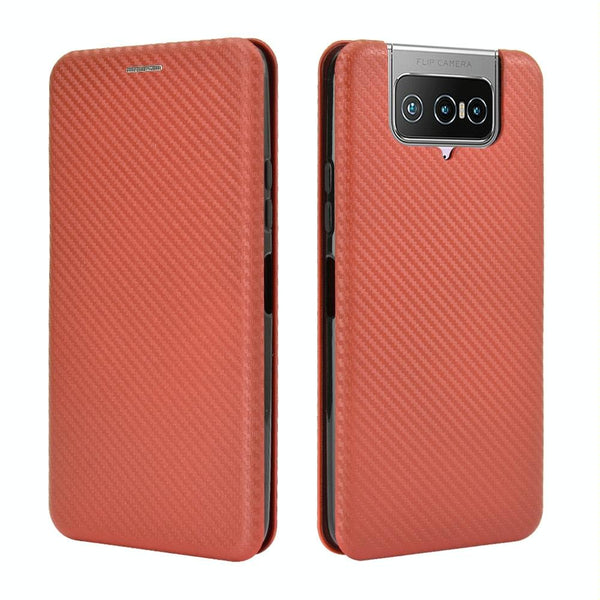 For Asus Zenfone 7 ZS670KS / Zenfone 7 Pro ZS671KS Carbon Fiber Texture Horizontal Flip TPU + PC + PU Leather Case with Card Slot & Lanyard(Brown)