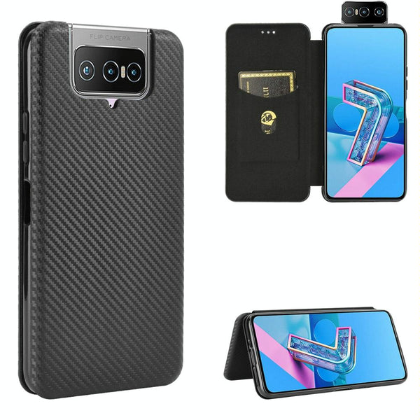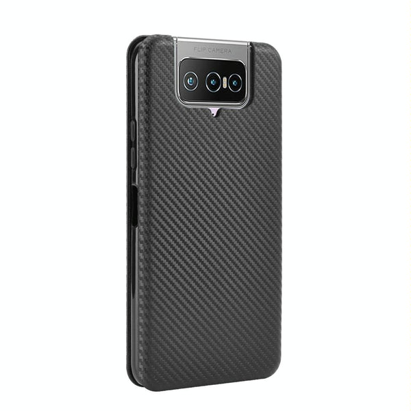 For Asus Zenfone 7 ZS670KS / ZenFone 7 Pro ZS671KS Carbon Fiber Texture Horizontal Flip TPU + PC + PU Leather Case with Card Slot(Black)