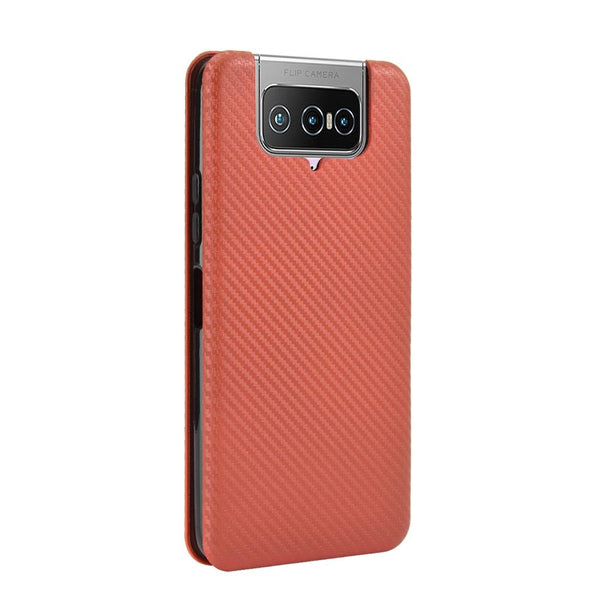 For Asus Zenfone 7 ZS670KS / ZenFone 7 Pro ZS671KS Carbon Fiber Texture Horizontal Flip TPU + PC + PU Leather Case with Card Slot(Brown)