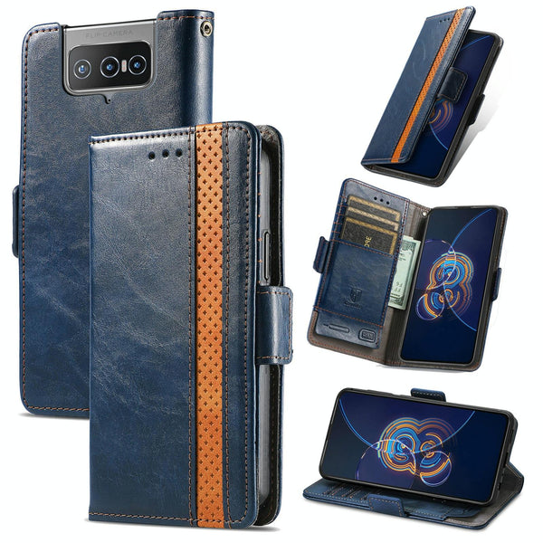 For Asus Zenfone 8 Flip CaseNeo Business Splicing Dual Magnetic Buckle Horizontal Flip PU Leather Case with Holder & Card Slots & Wallet(Blue)