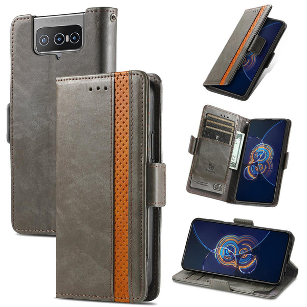 For Asus Zenfone 8 Flip CaseNeo Business Splicing Dual Magnetic Buckle Horizontal Flip PU Leather Case with Holder & Card Slots & Wallet(Grey)