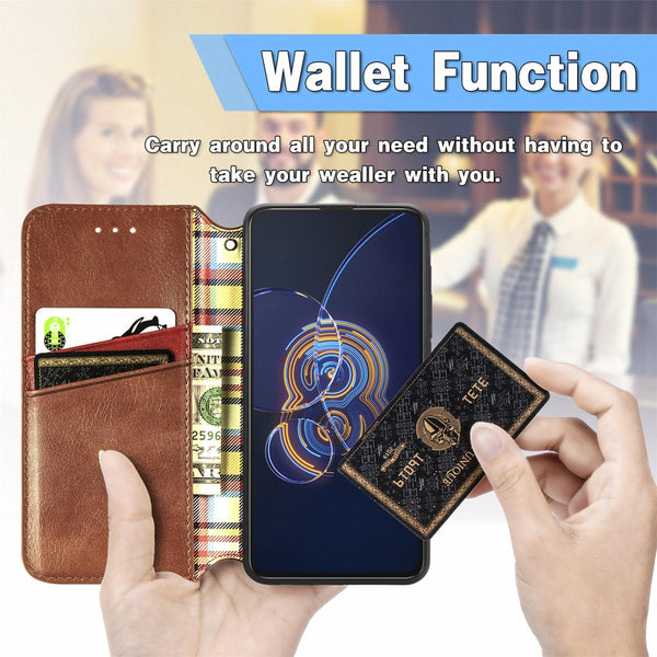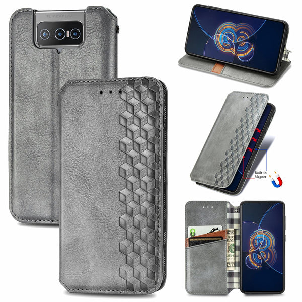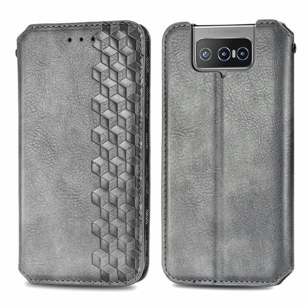For Asus Zenfone 8 Flip Cubic Grid Pressed Horizontal Flip Magnetic PU Leather Case with Holder & Card Slots & Wallet(Grey)
