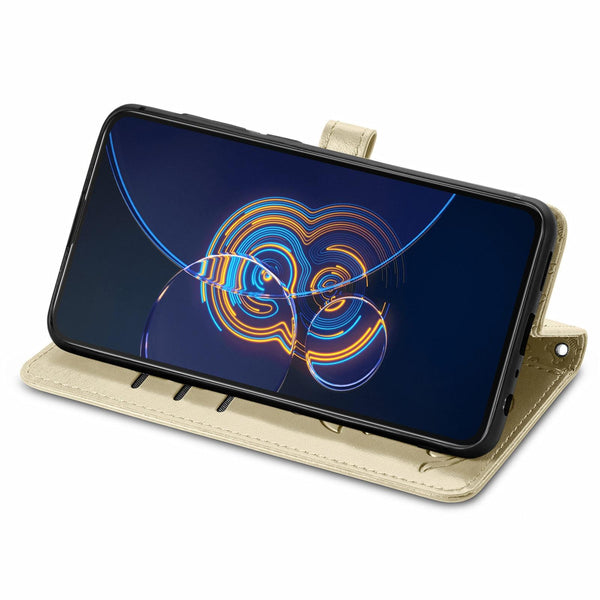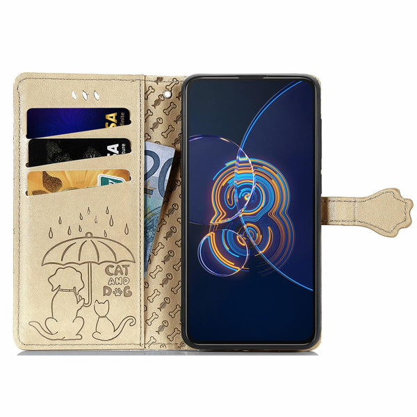 For Asus Zenfone 8 Flip Lovely Cat and Dog Embossing Pattern Horizontal Flip Leather Case , with Holder & Card Slots & Wallet & Cartoon Clasp & Lanyard(Gold)