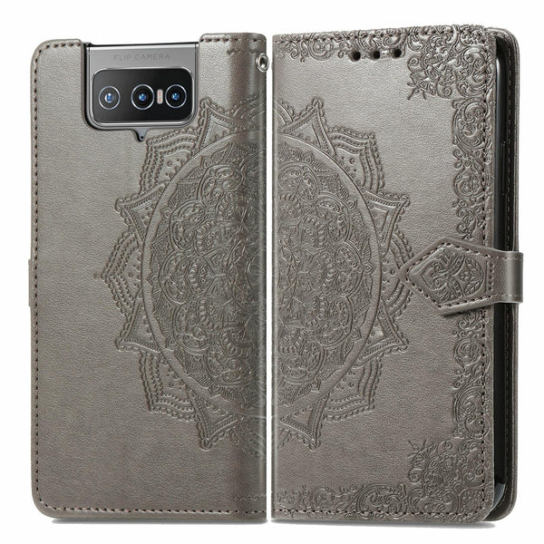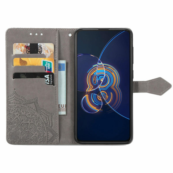 ForAsus Zenfone 8 Flip Mandala Embossing Pattern Horizontal Flip Leather Case with Holder & Card Slots & Wallet & Lanyard(Grey)