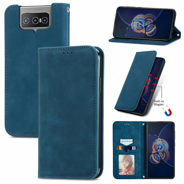For Asus Zenfone 8 Flip Retro Skin Feel Business Magnetic Horizontal Flip Leather Case with Holder & Card Slots & Wallet & Photo Frame(Blue)