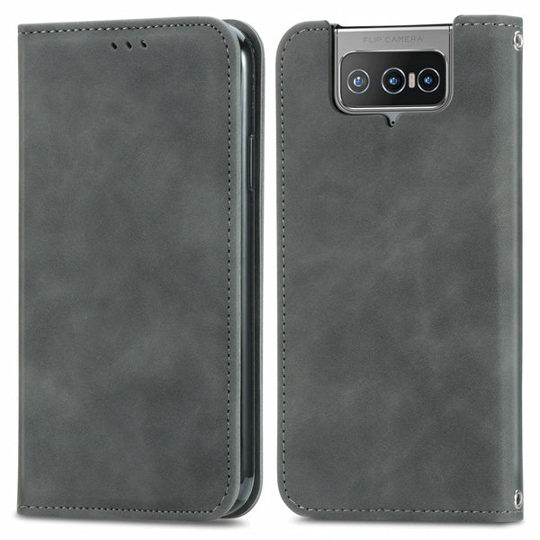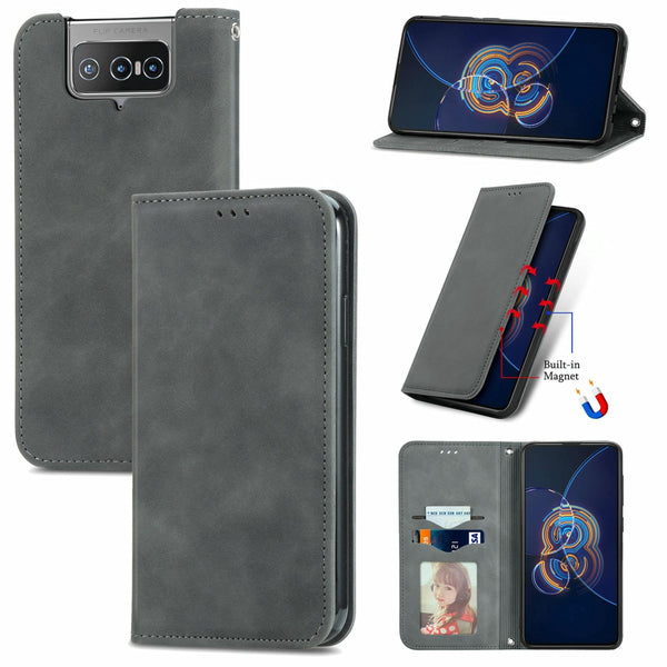 For Asus Zenfone 8 Flip Retro Skin Feel Business Magnetic Horizontal Flip Leather Case with Holder & Card Slots & Wallet & Photo Frame(Gray)