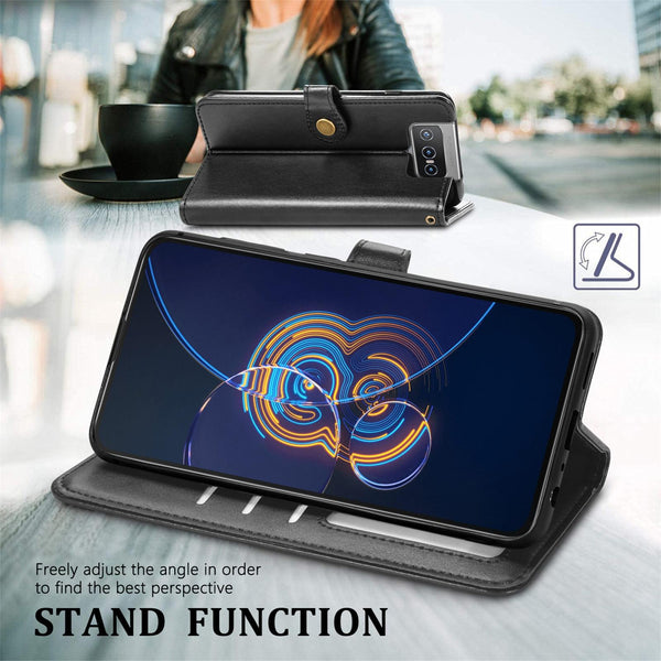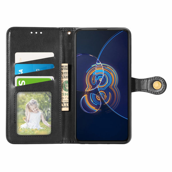 For Asus Zenfone 8 Flip Solid Color Leather Buckle Phone Case with Lanyard & Photo Frame & Card Slot & Wallet & Stand Function(Black)