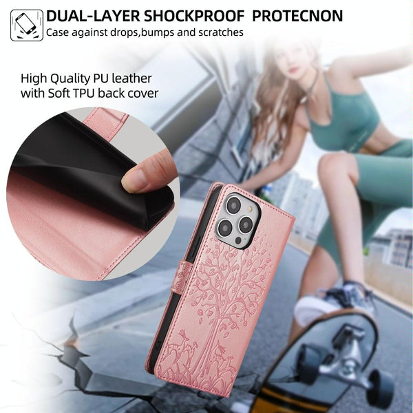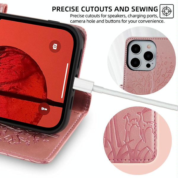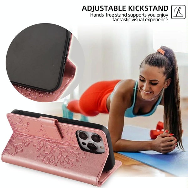 For Asus Zenfone 8 Flip Tree & Deer Embossed Leather Phone Case(Rose Gold)