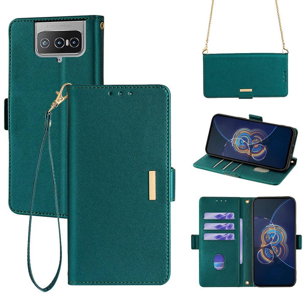 For ASUS Zenfone 8 Flip ZS672KS Crossbody Chain Leather Phone Case(Green)