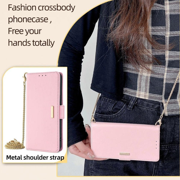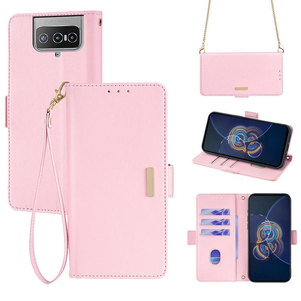For ASUS Zenfone 8 Flip ZS672KS Crossbody Chain Leather Phone Case(Pink)